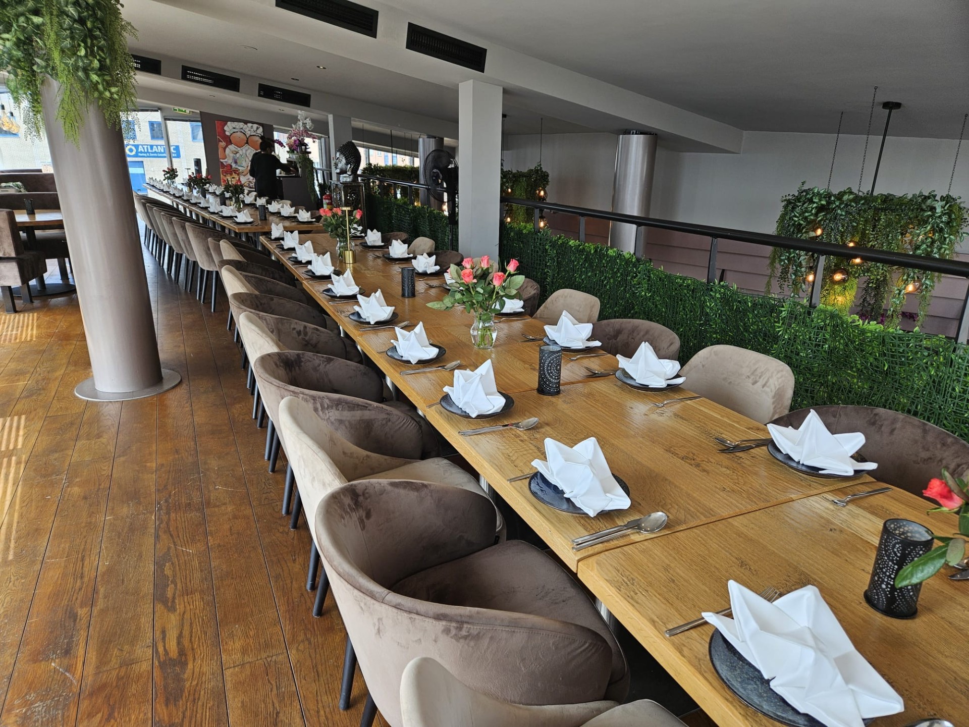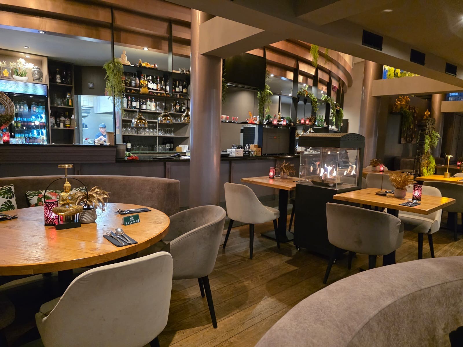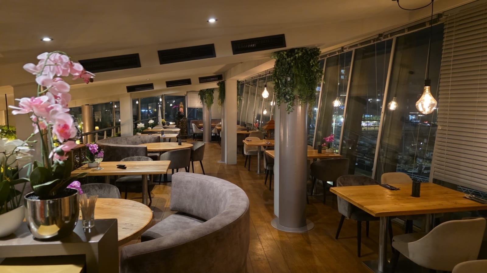 Het pand heeft 2 verdiepingen en in 175 zitplaatsen binnen. De inrichting is onlangs nog gemoderniseerd in een moderne nieuwe look. Het vele glas maakt het geheel bijzonder licht en ruimtelijk.